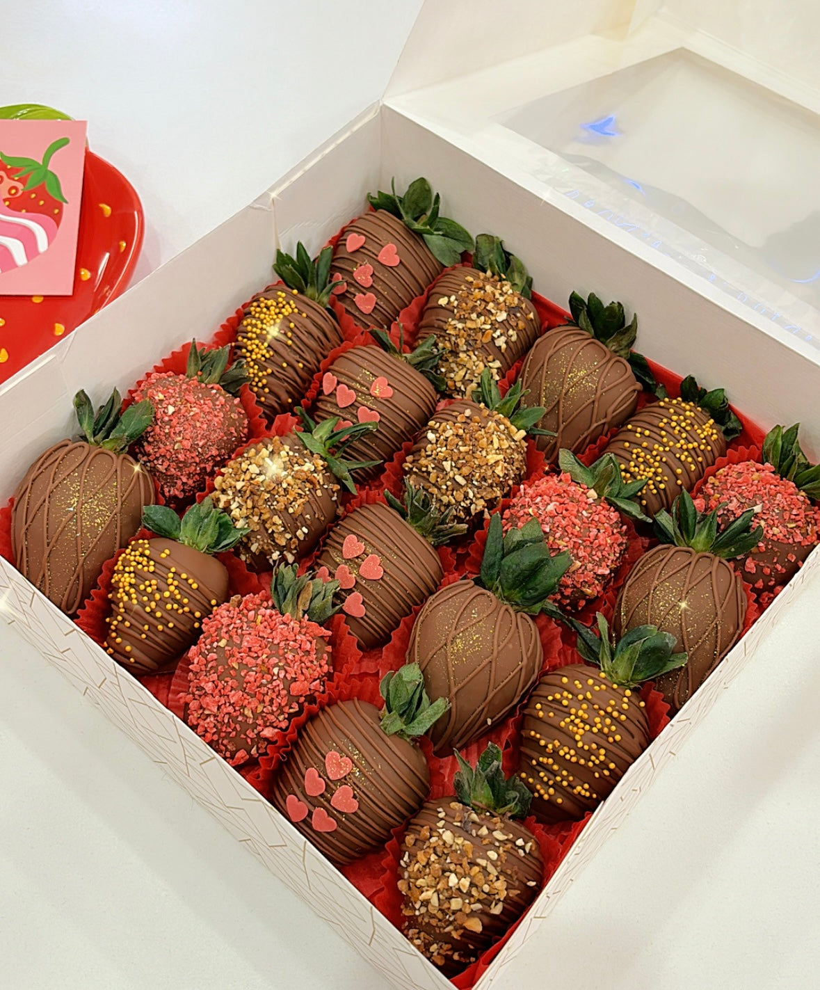 Une box de 20 fraises enrobées de chocolat au lait