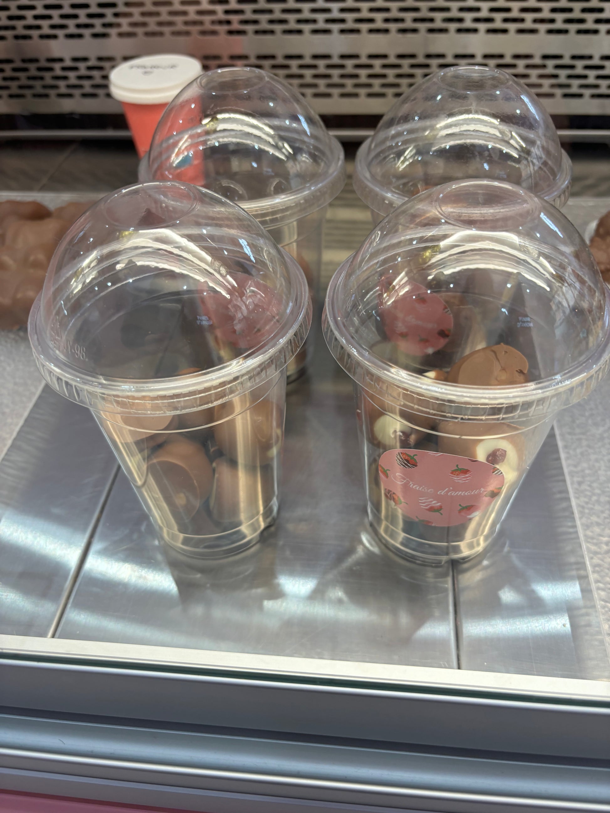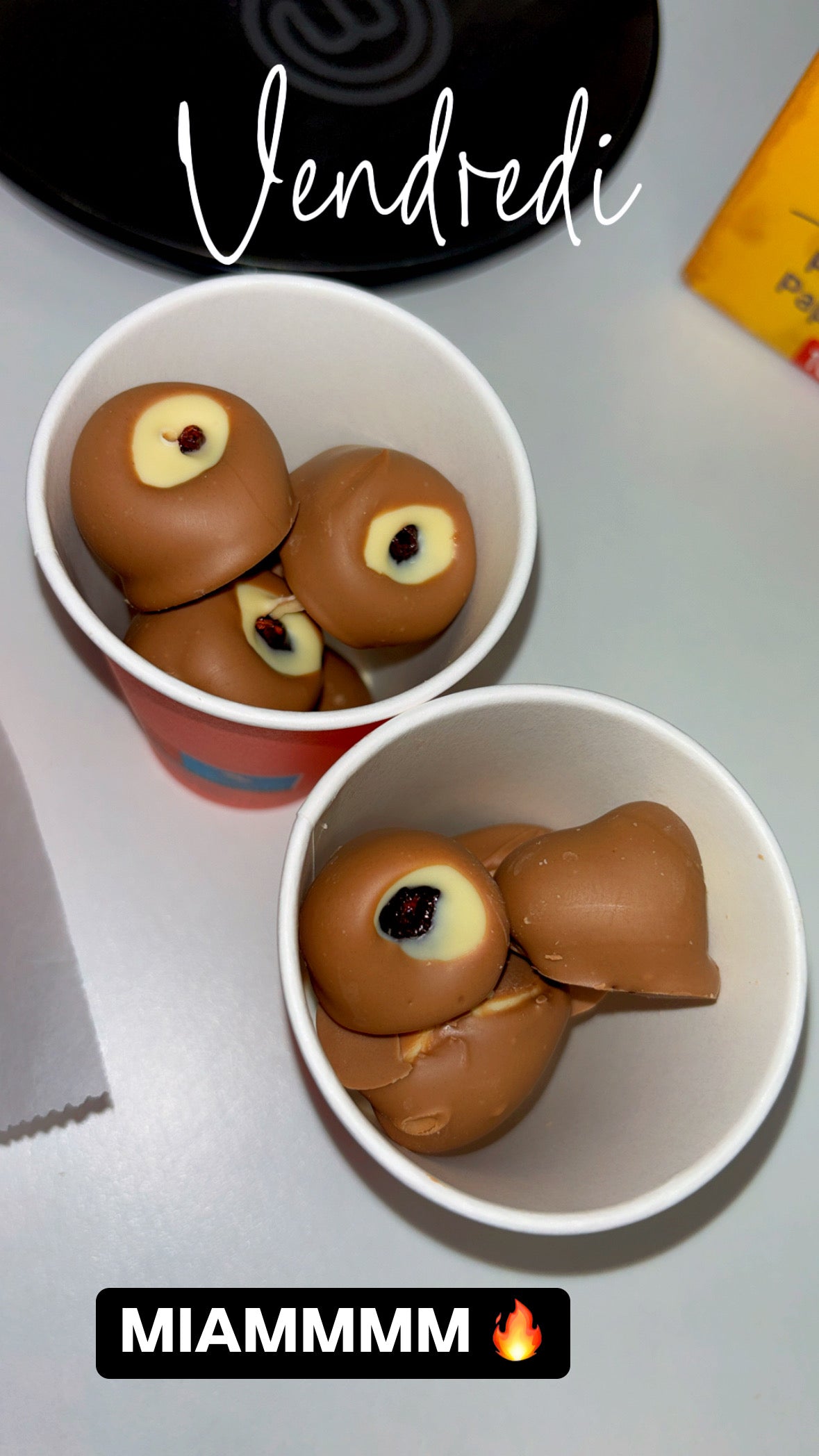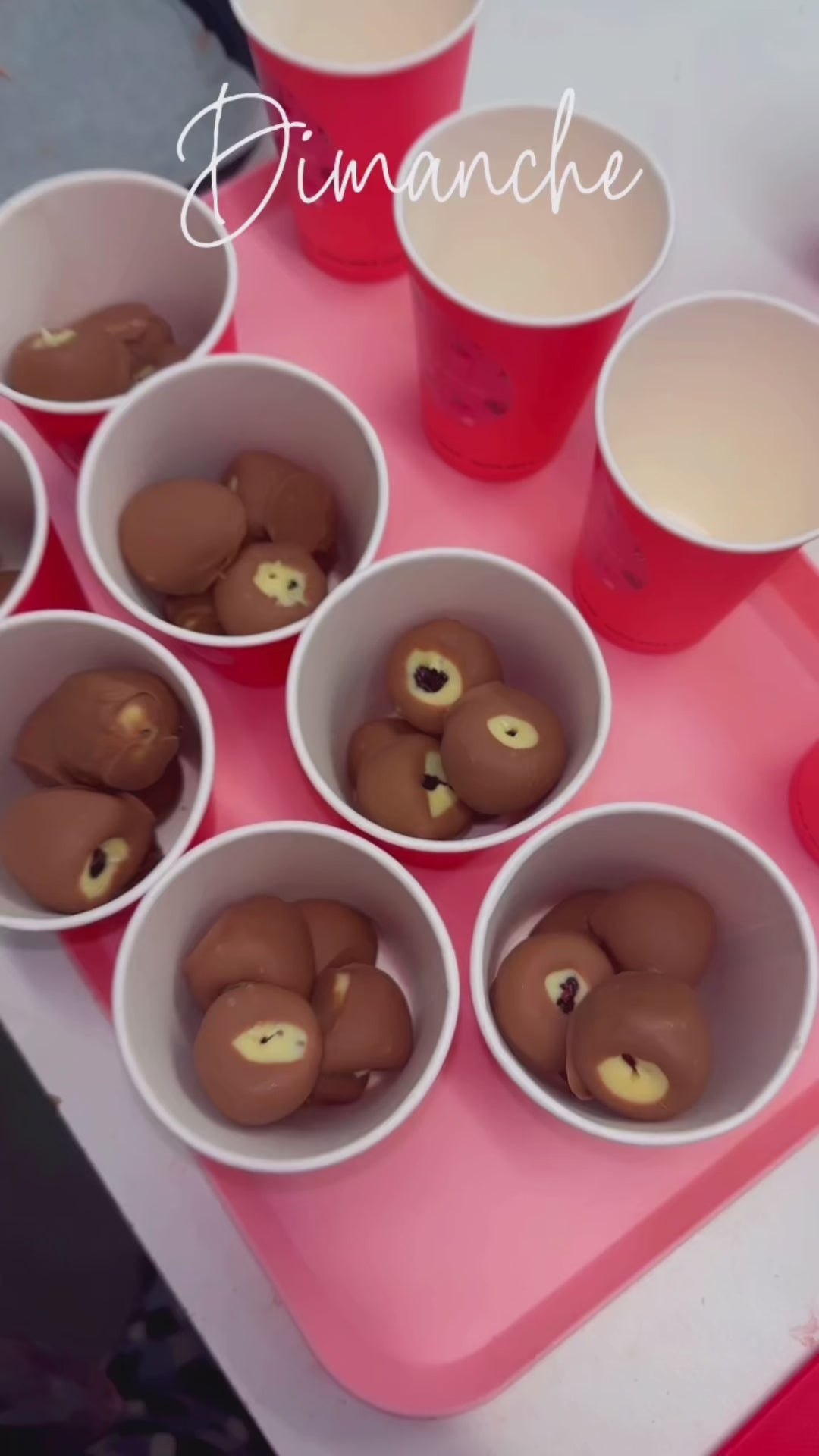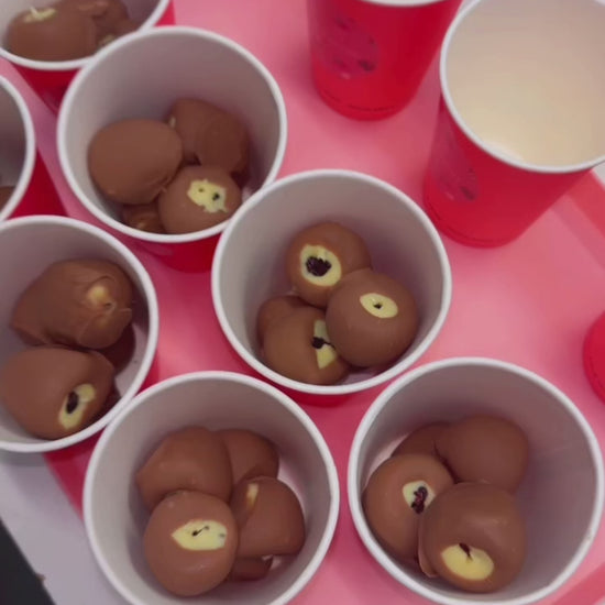 Framboises enrobĂ©es de chocolat blanc et de chocolat au laitÂ